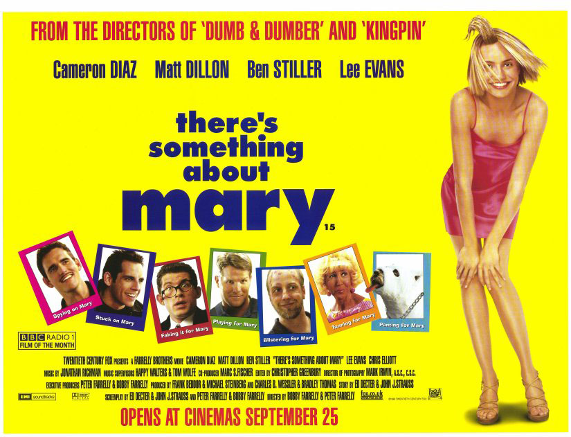 Fue con «Dos tontos muy tontos» donde los hermanos Farrelly fueron conocidos por el gran mundo , pero fue con esta «Algo pasa con mary» con la que hicieron su obra maestra que hasta la fecha no han conseguido igualar…peli con rubia, muchos pretendientes y un perro …un perro que con esta escena me hizo llorar de risa….