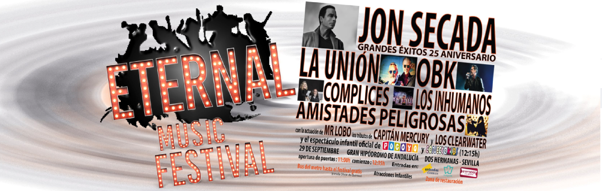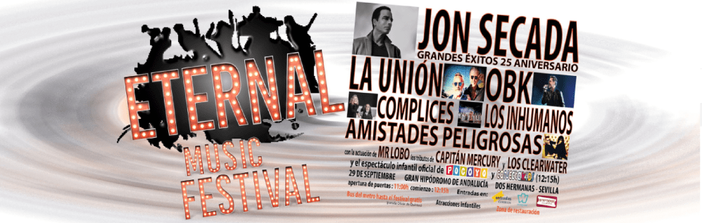 En el otro lado del ring……el ETERNAL MUSIC FESTIVAL de Dos Hermanas donde actuaran ….MR LOBO , AMISTADES PELIGROSAS , LOS INHUMANOS , OBK , COMPLICES , LA UNION Y JON SECADA ….