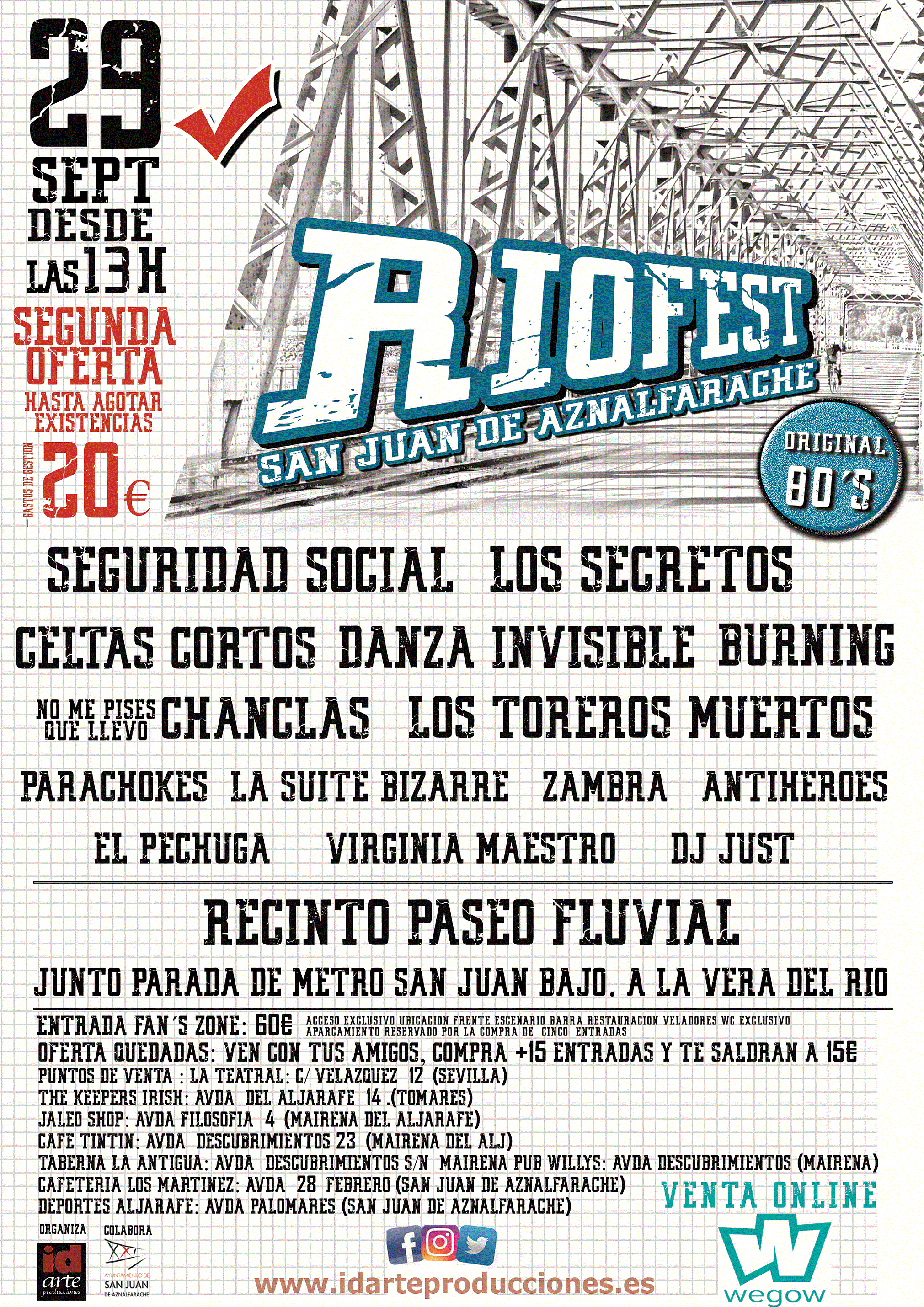 Mayormente , y saco ya mi lenguaje llano ….los dos conciertos son acojonantes….a saber….en el RIOFEST de San Juan actuaran …..PARACHOKES , SEGURIDAD SOCIAL , LOS TOREROS MUERTOS , CELTAS CORTOS , BURNING , NO ME PISES QUE LLEVO CHANCLAS , DANZA INVISIBLE …y mis adorados LOS SECRETOS…